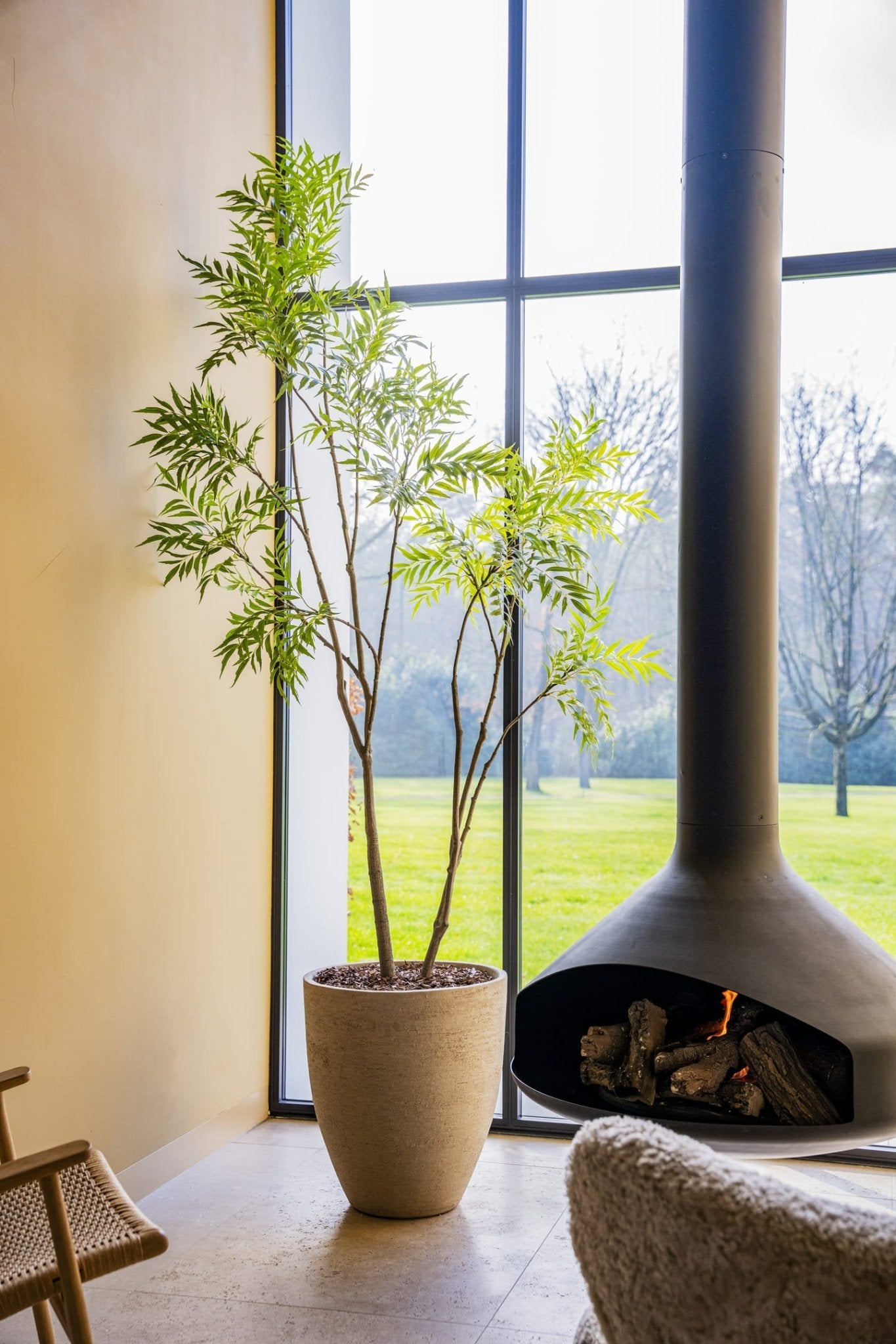 Geef uw interieur een luxe, natuurlijke uitstraling met onze Bamboe Boom 240 cm. Deze grote kunstboom, met zijn slanke stelen en gedetailleerde bladeren, voegt een elegante zen-sfeer toe aan elke ruimte. Perfect voor royale interieurs, commerciële omgevingen of kantoren die op zoek zijn naar een onderhoudsvrije, verfijnde decoratie.